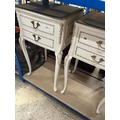 Pair of white painted bedside tables / cabinets with two drawers, gilt borders, in French style