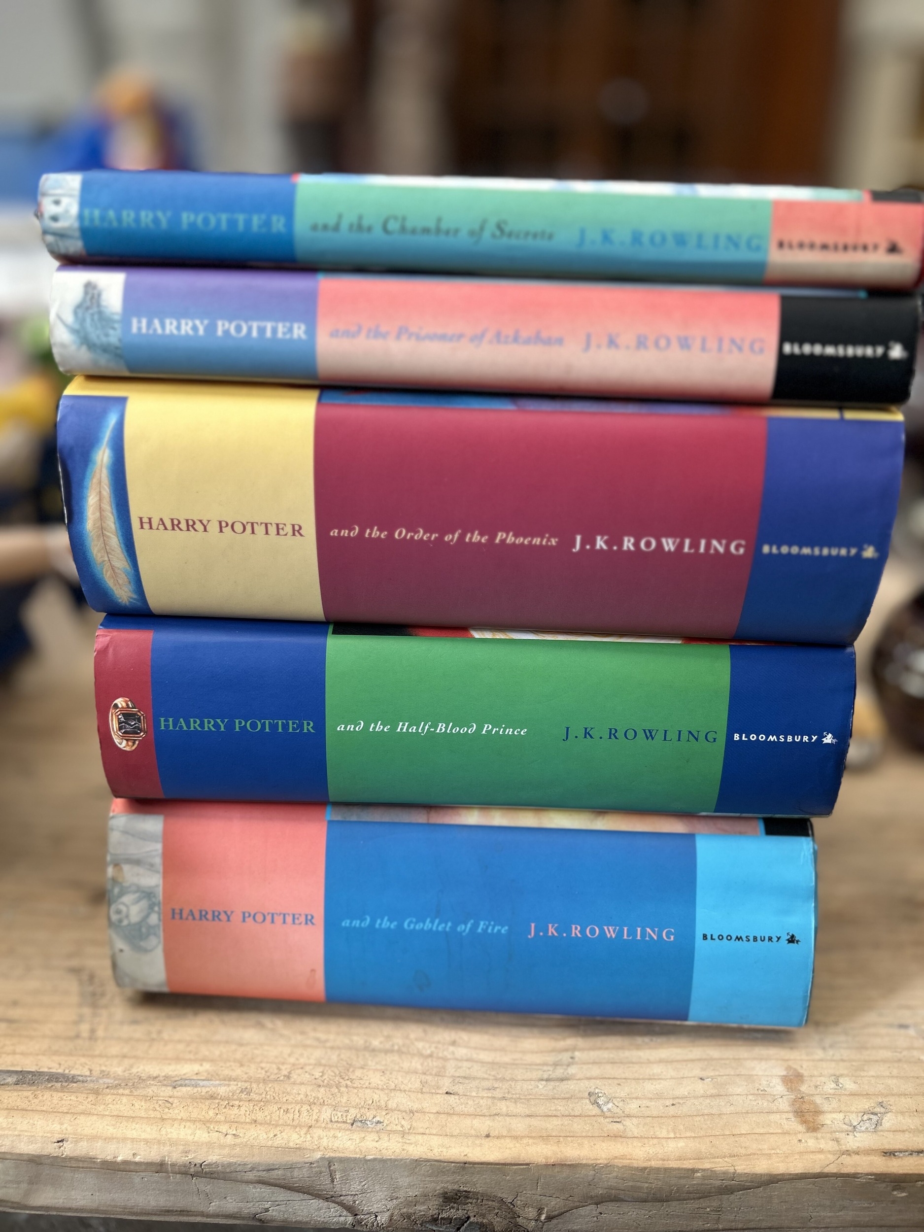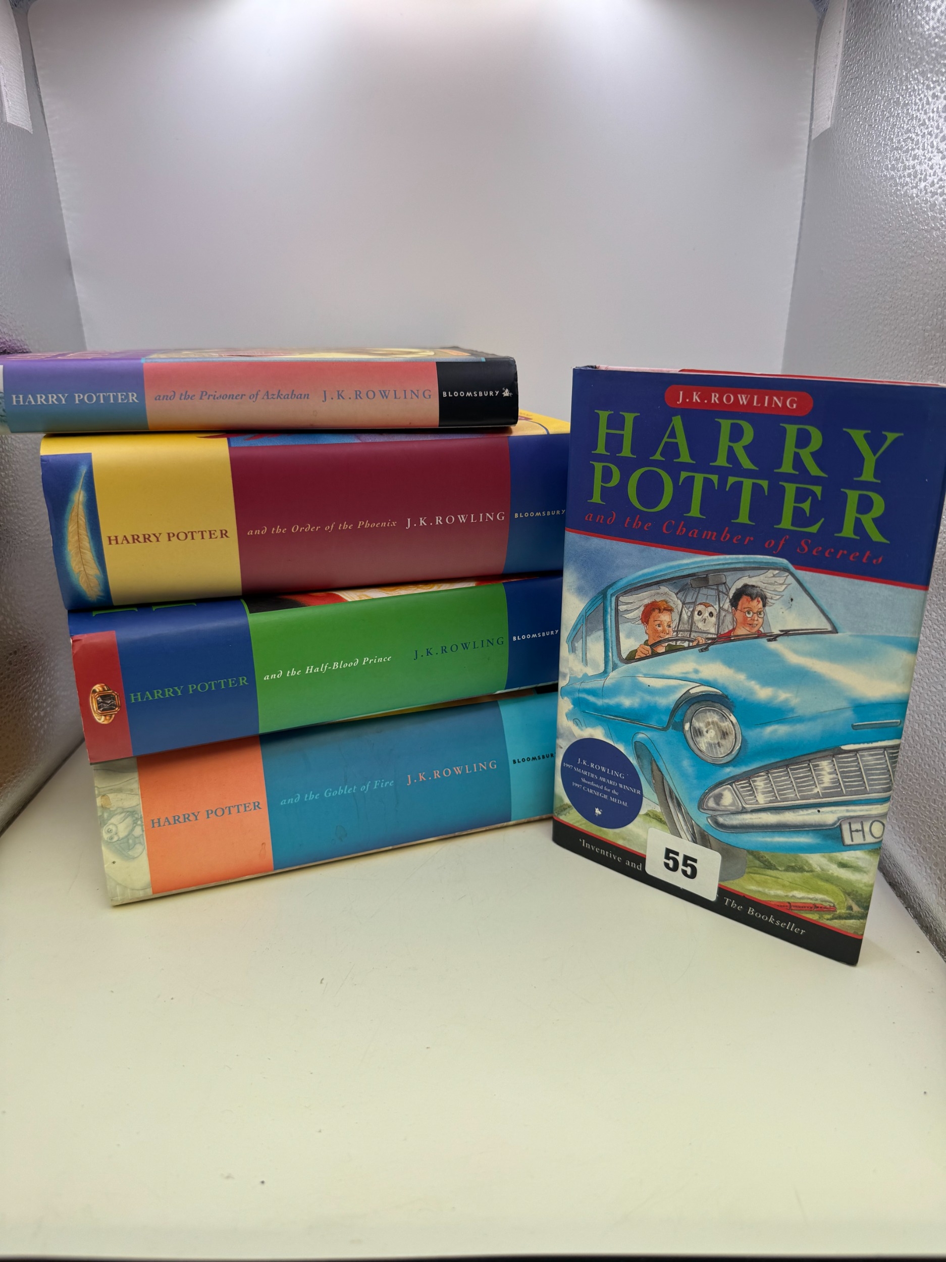 Group five vintage Harry Potter Hardback books, with dust jackets (5)