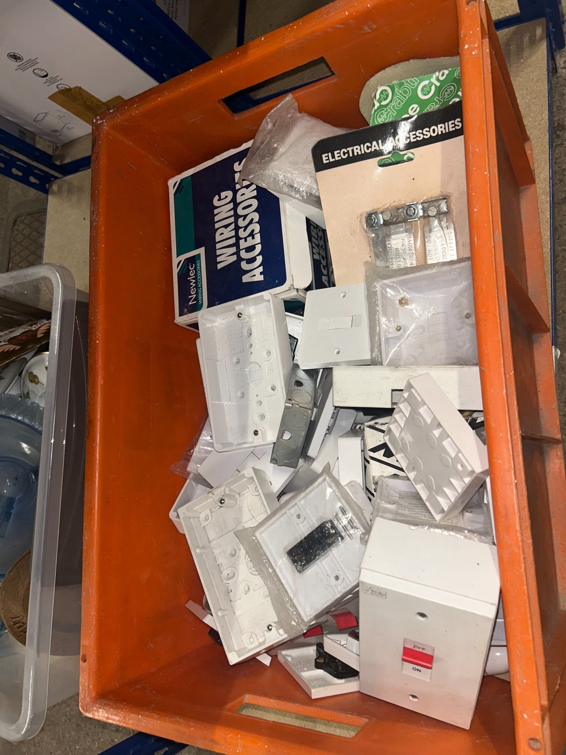 Large box lot containing vintage and modern light switches and other domestic power switches
