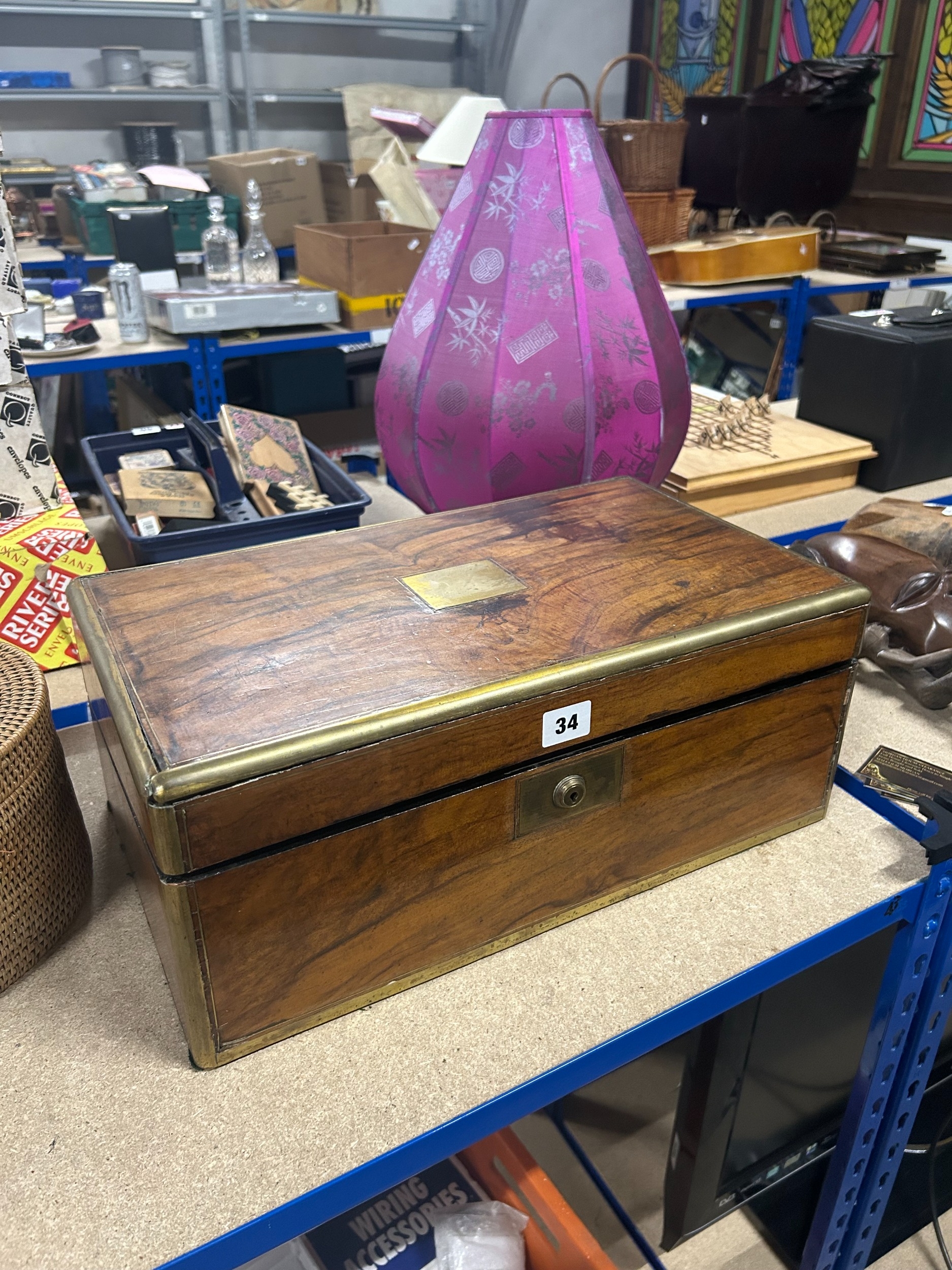 Large Victorian brass banded walnut writing slope