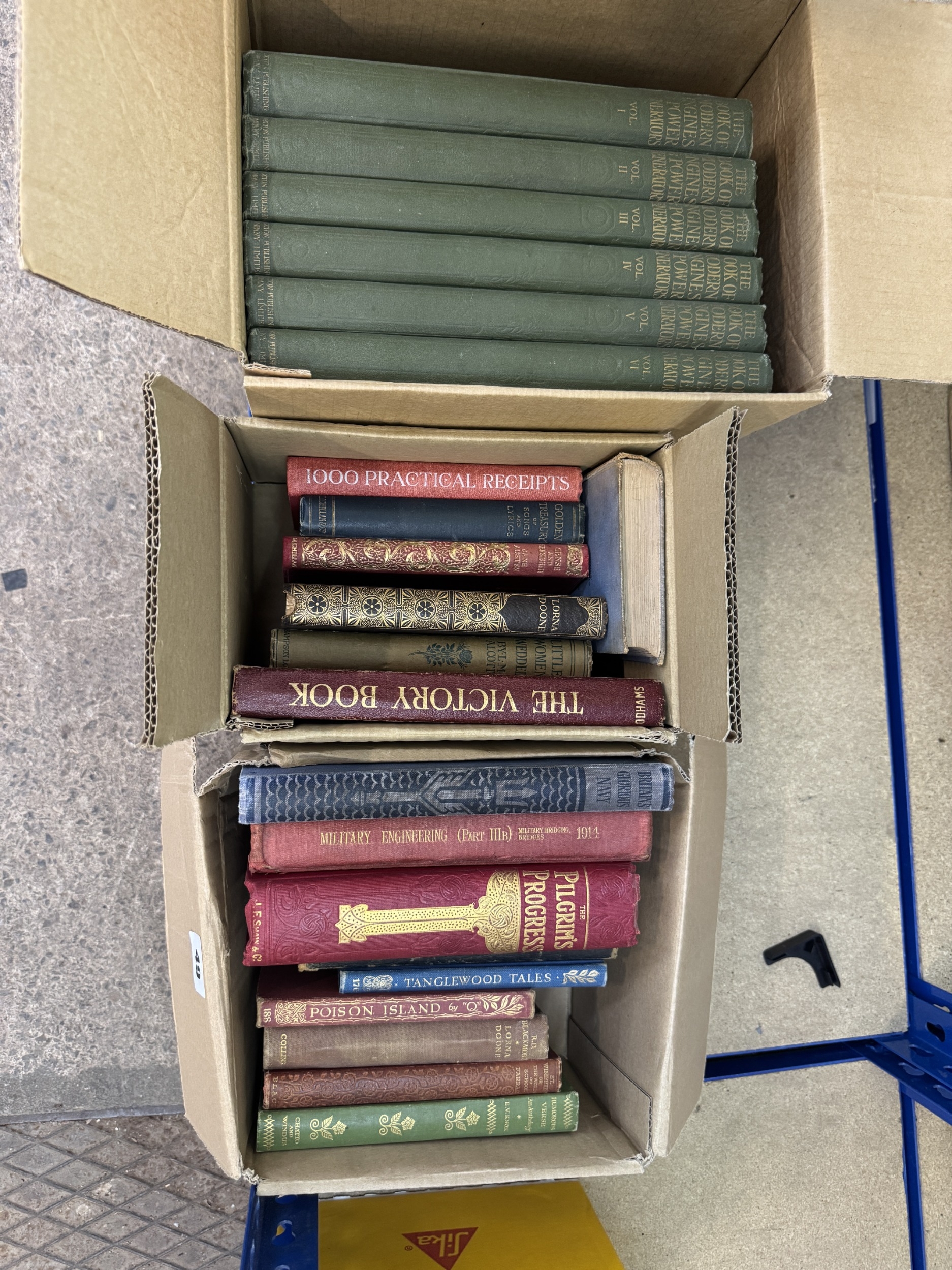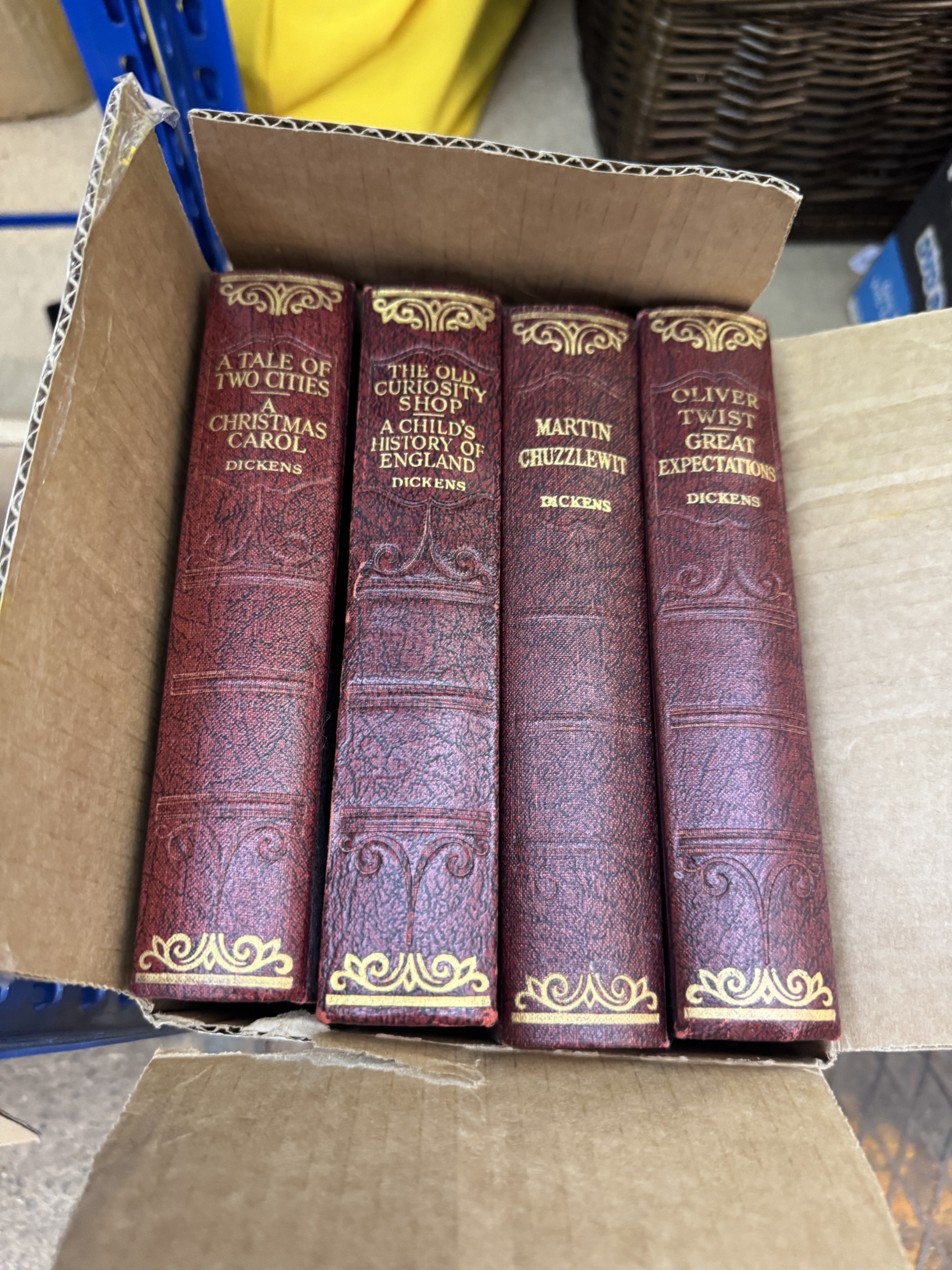 4 boxed of collectable hardback books to include The pilgrims progress by john bunyan, 8 Dickens books, etc.