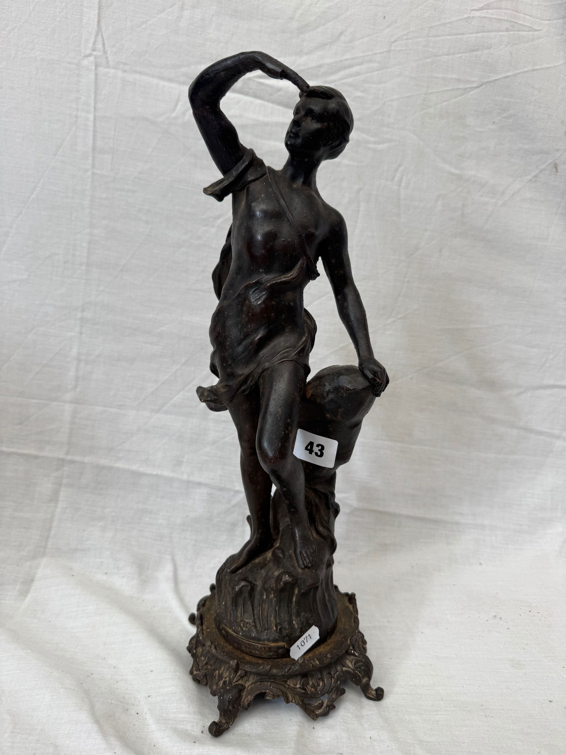 19th century French spelter figure, signed verso Ch(arles) Perron, 42cm high
