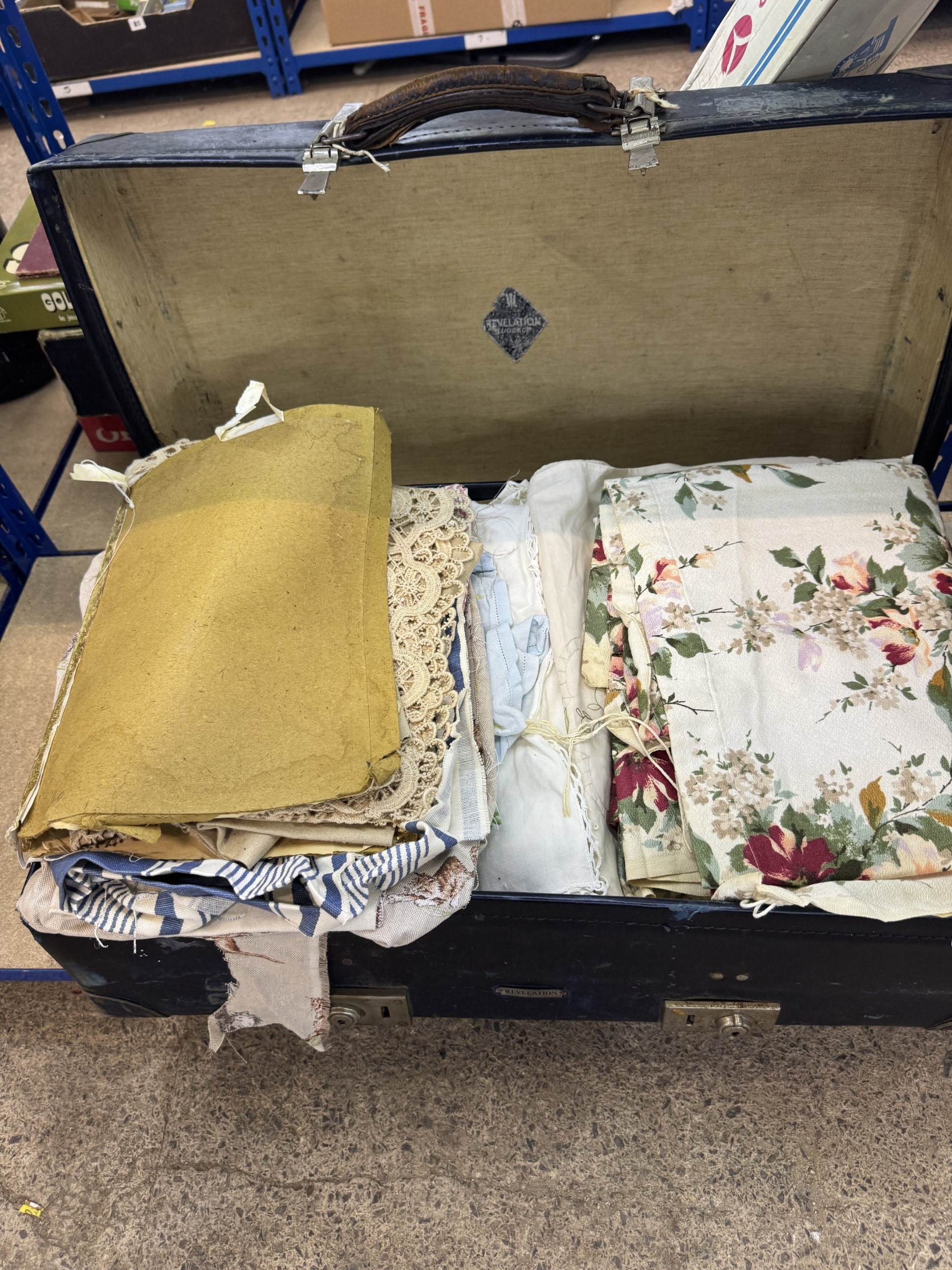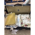 Vintage suitcase containing mixed lot of fabrics
