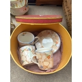 Three vintage / mid 20th century ‘Rockgarden’ pattern coffee cans, saucers and a cylindrical box decorated with elephants
