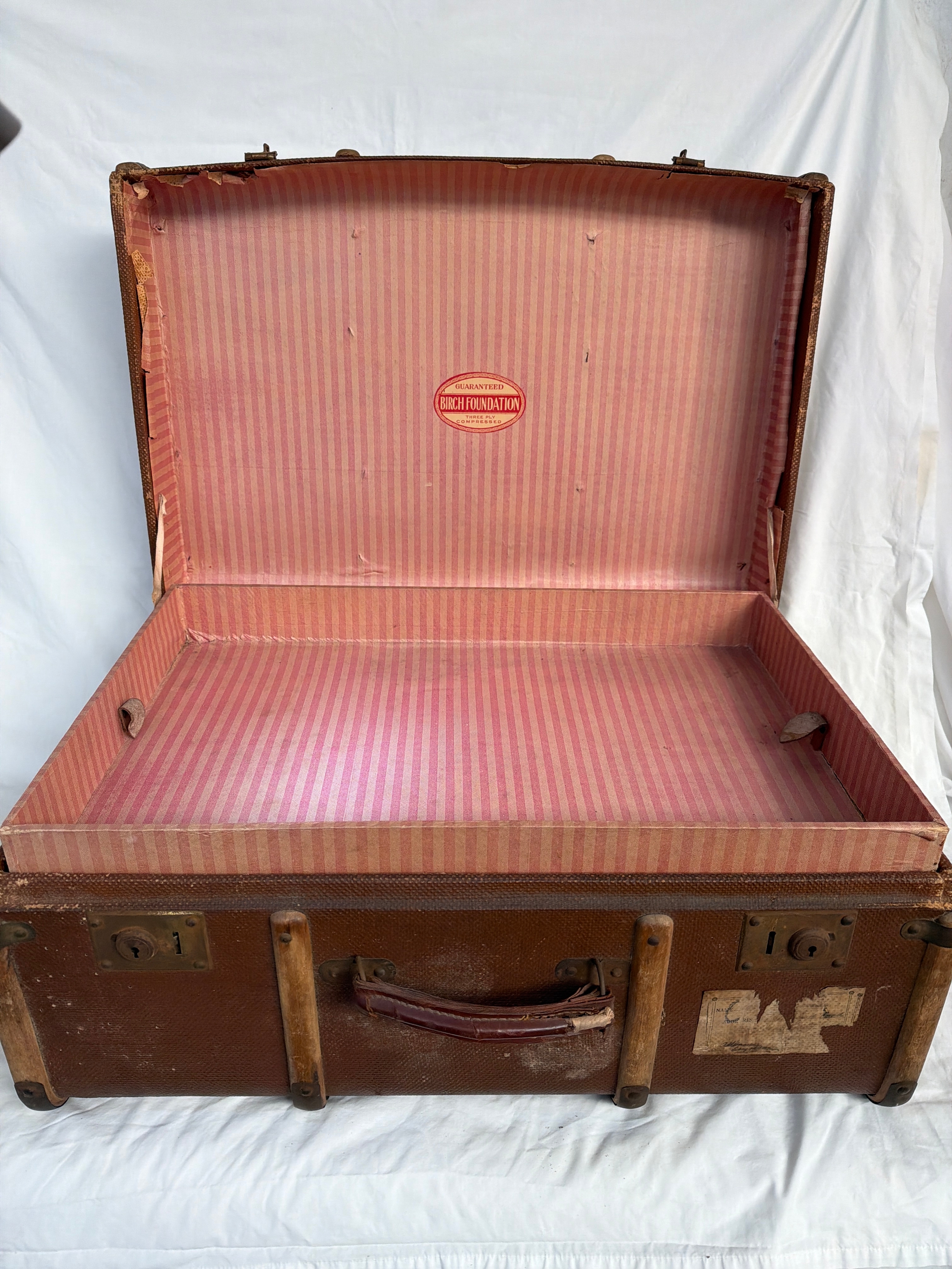 Vintage steamer trunk with interior tray