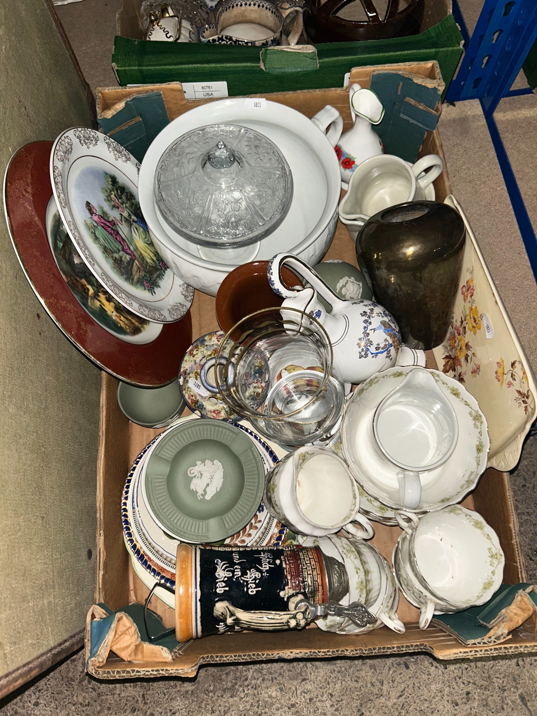 Mixed decorative ceramics and glass to include 19th century tea set, Wedgwood etc