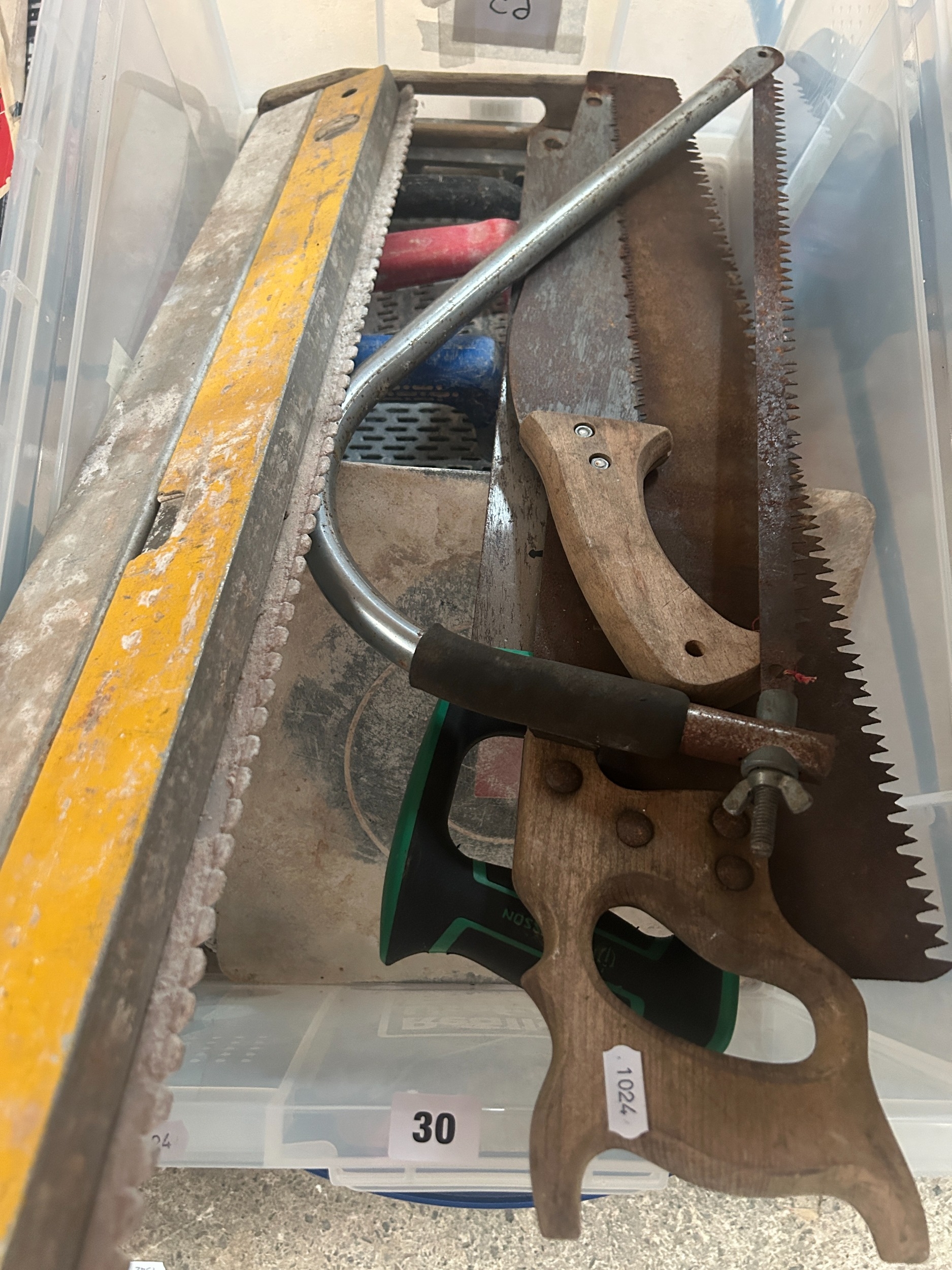 vintage hand saws, various other tools, etc
