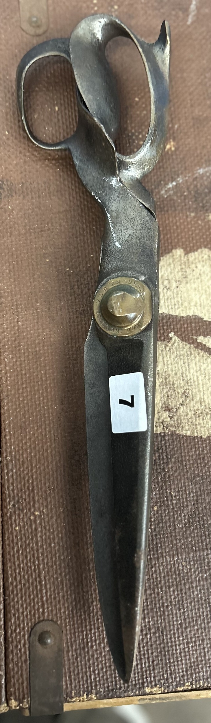 Large pair of 19th century tailor’s cloth scissors, marked R. Heinisch Inventor, 33cm long.