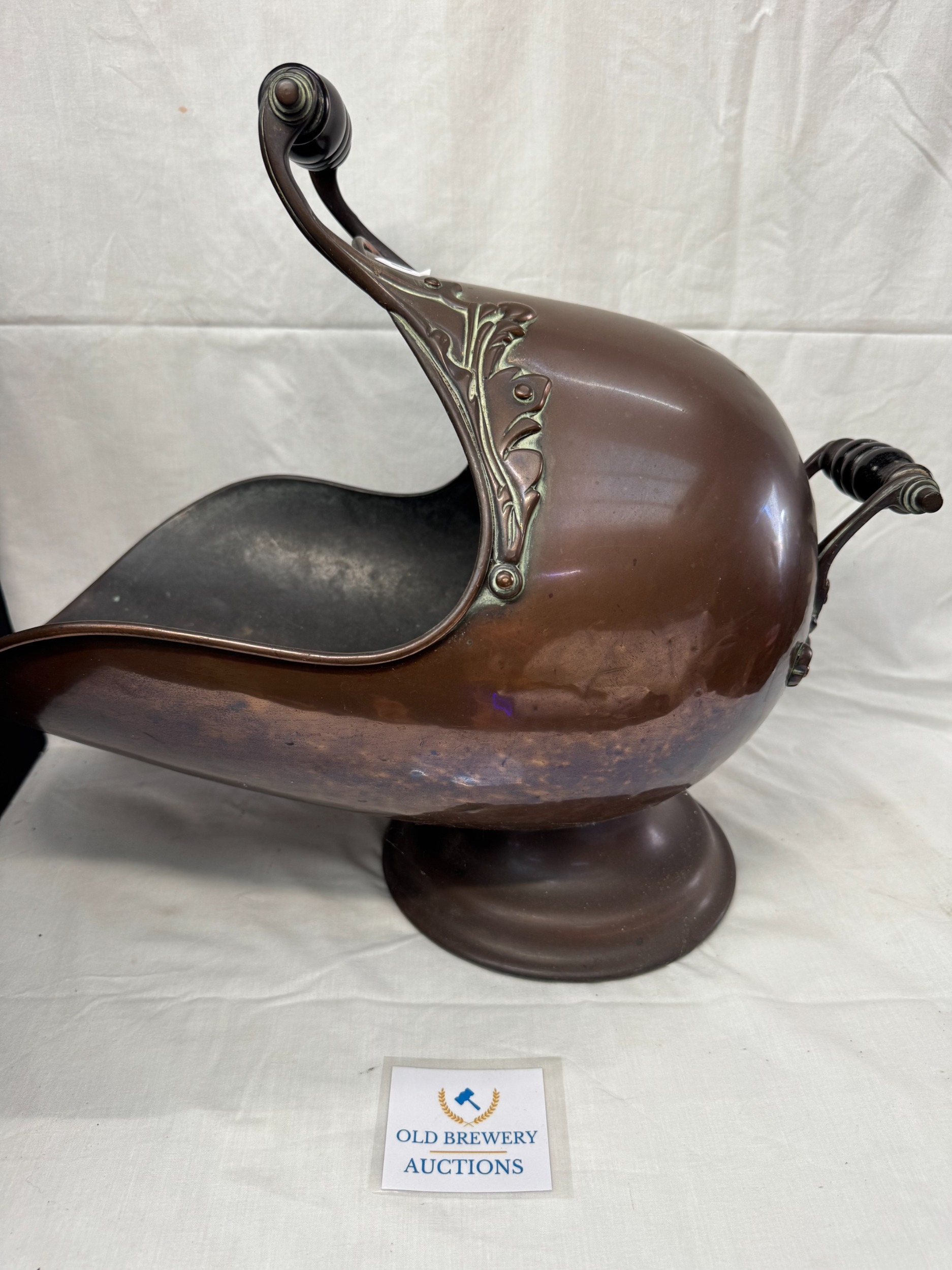 Victorian copper coal helmet shaped scuttle