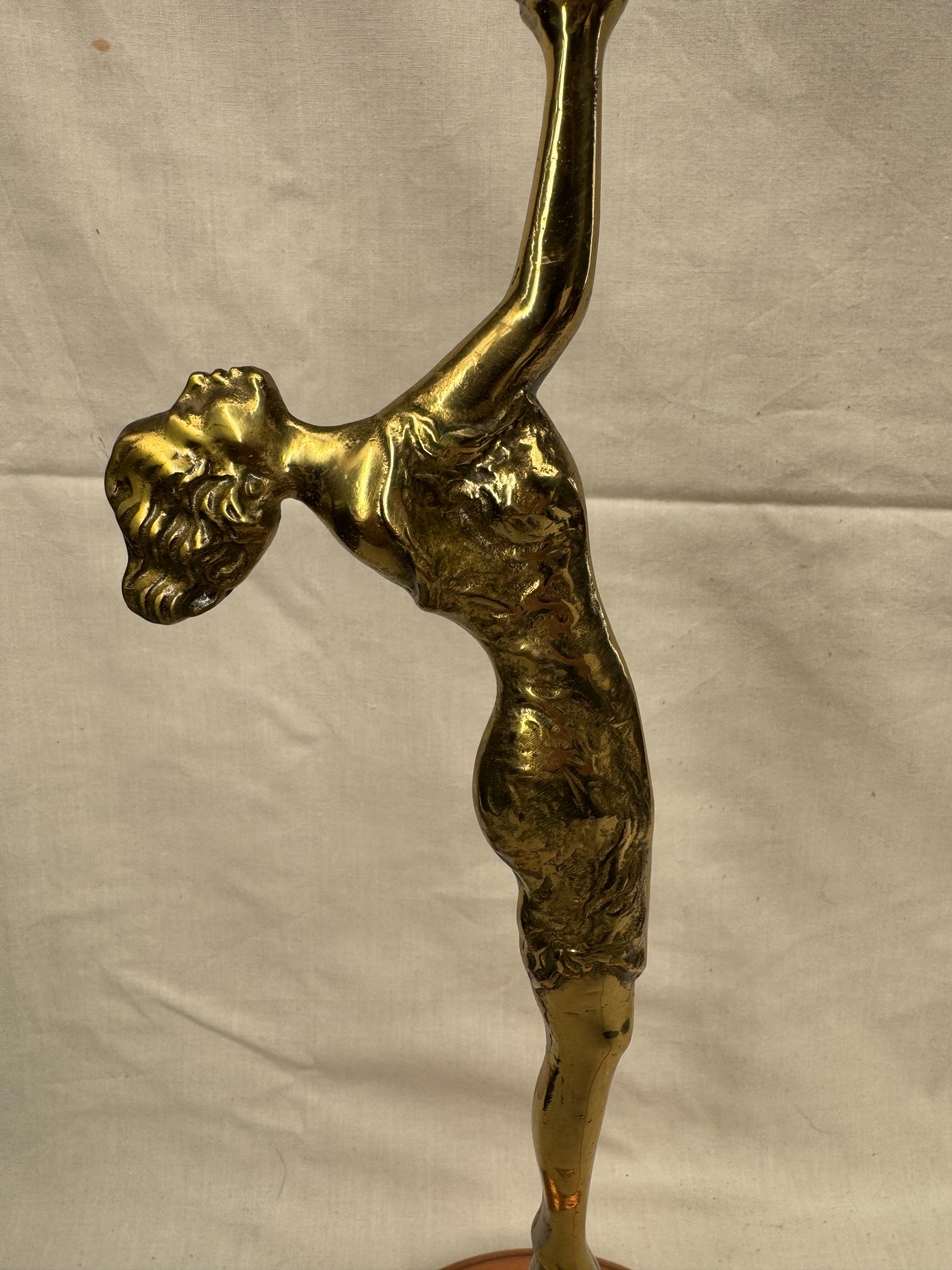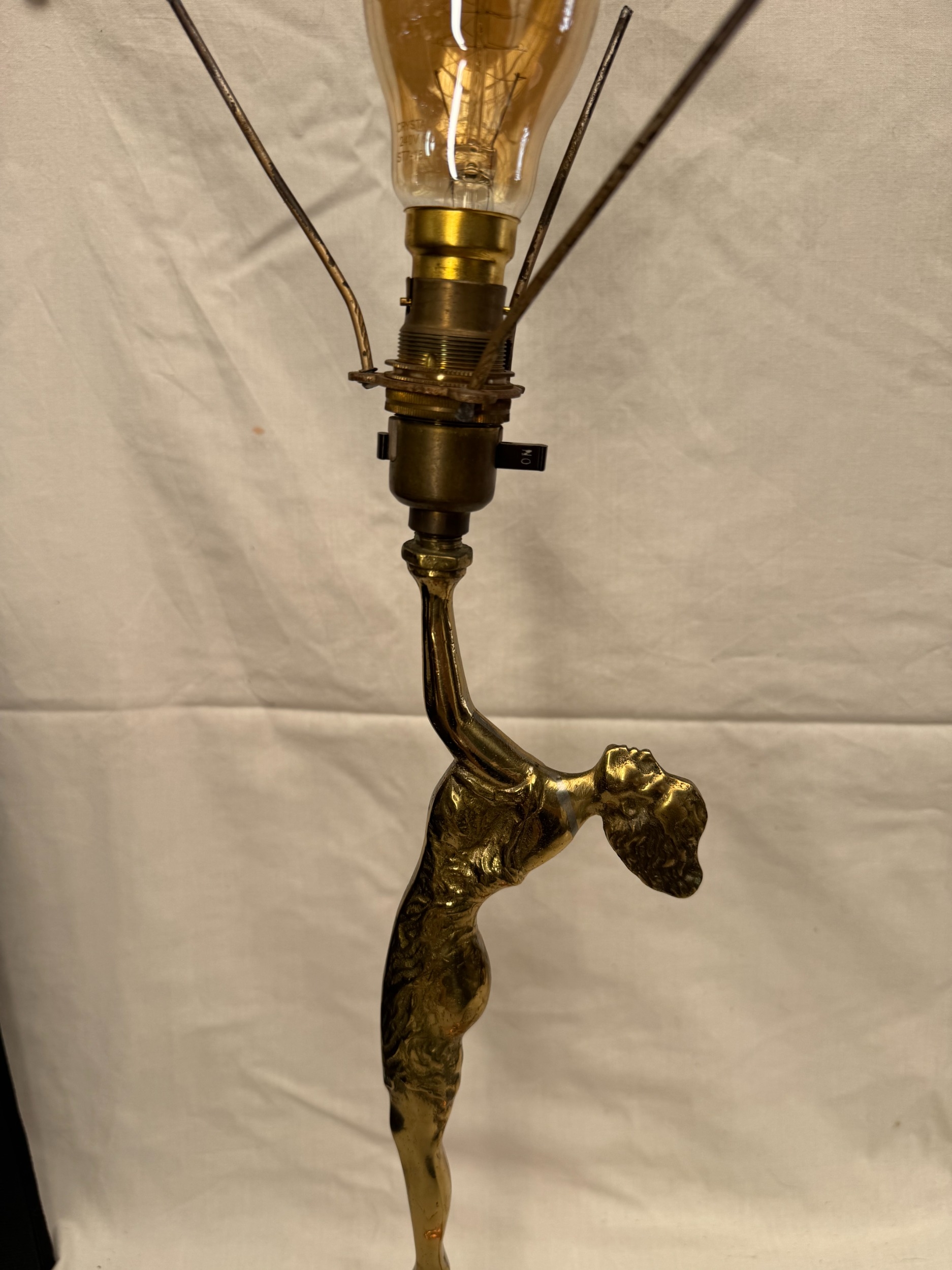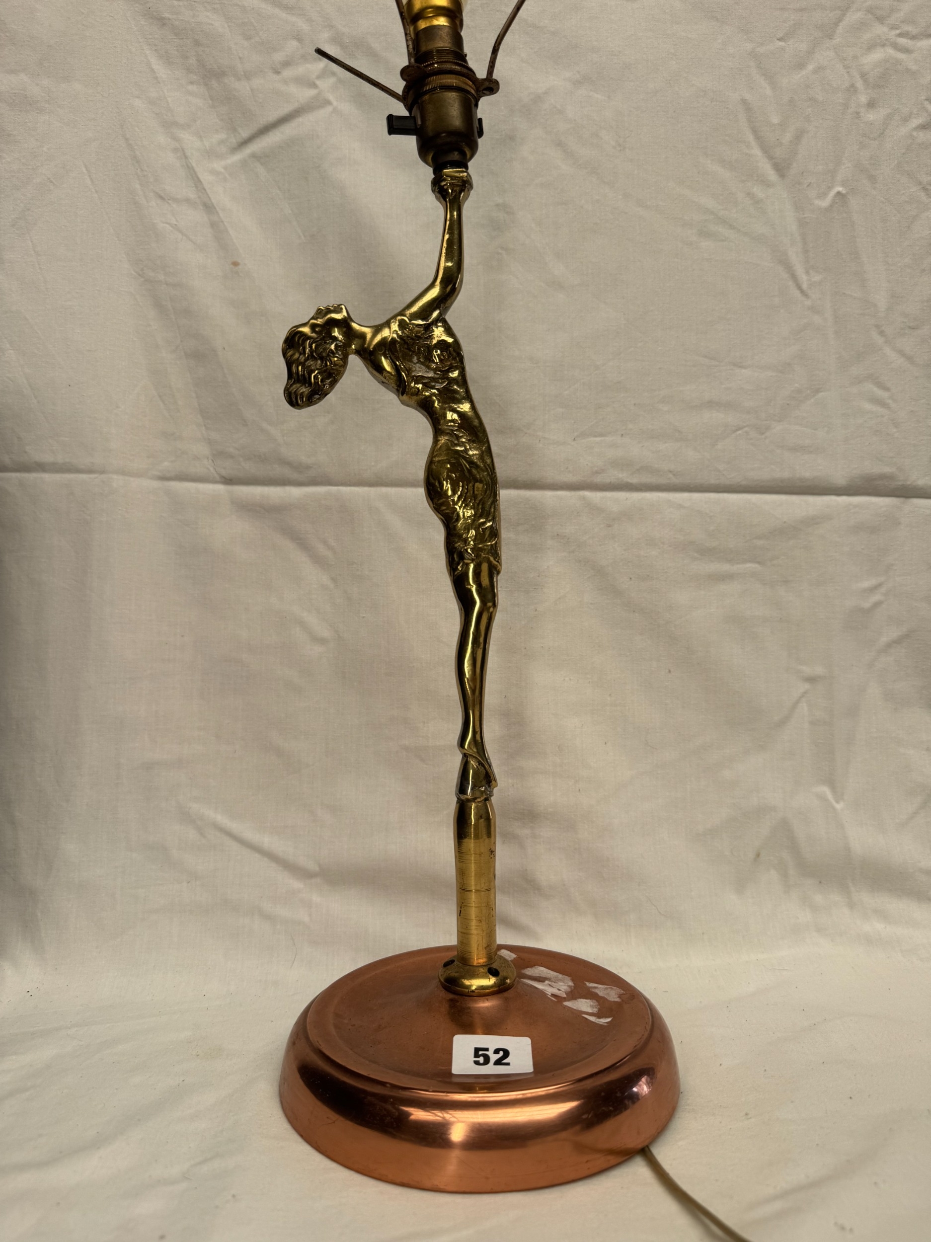 Antique figural desk / table lamp in the Art Deco style in the form of a standing female figure / dancer, copper and cast brass, 45cm high