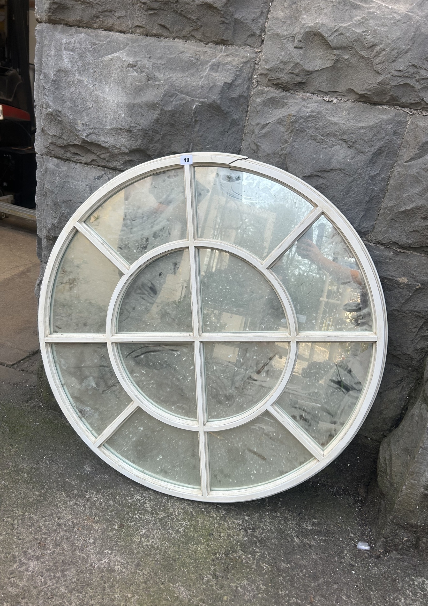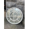 Rustic circular casement framed garden wall mirror with painted finish