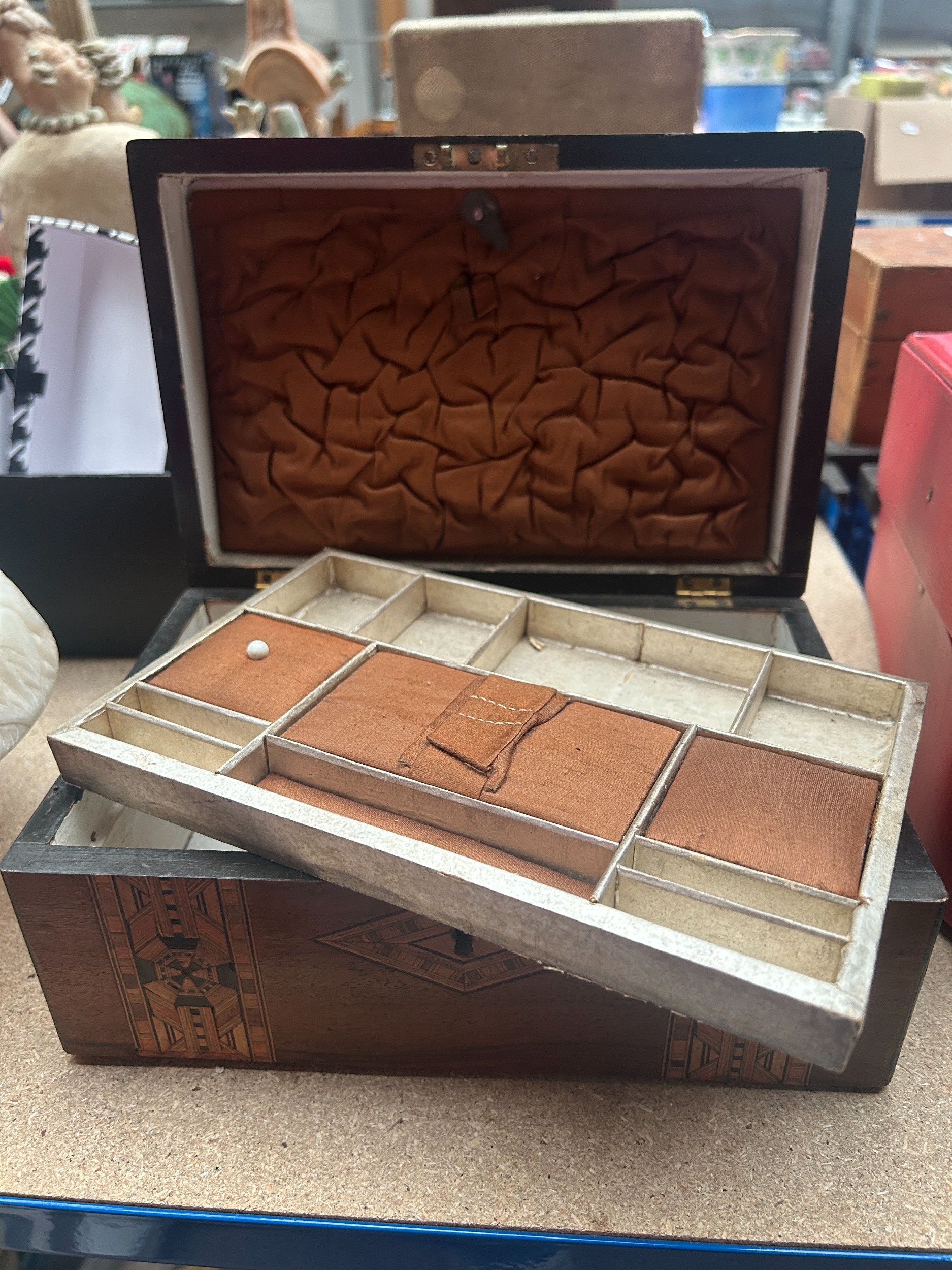 Edwardian parquetry inlaid walnut jewellery box