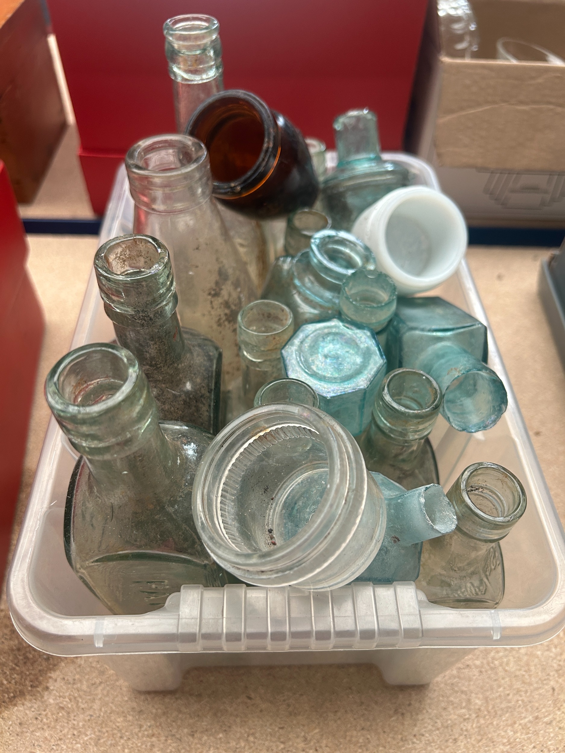 Collection of Antique chemists, ink and other bottles to include excavated examples