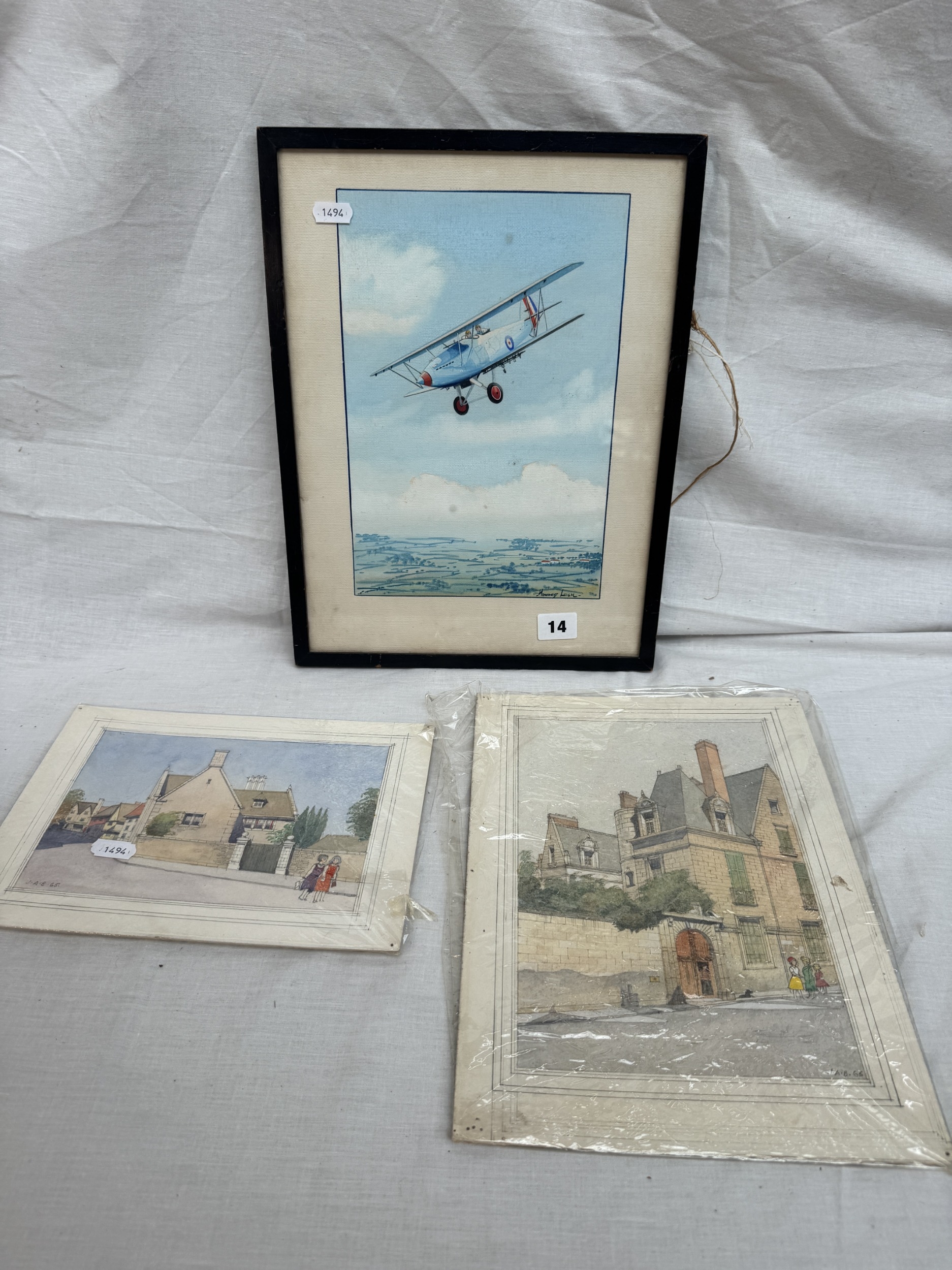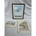 3 Original pictures to include a water colour by Howard lee of a Hawker Hart in flight.