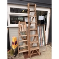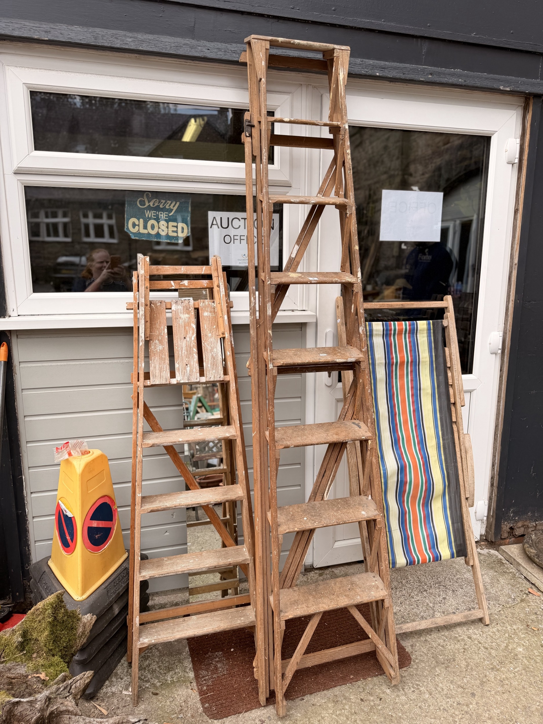 Two old rustic pine stepladders and a old pine folding deck chair (3)