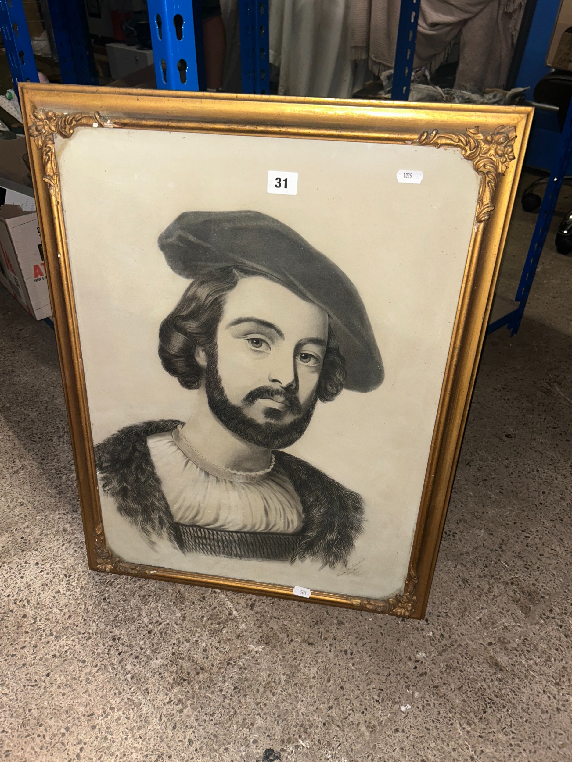 ‘Frances Ann Dodswell’, shoulder-length portrait, bearded gentleman, charcoal in gilt frame, signed and dated 1859, 67 x 51cm