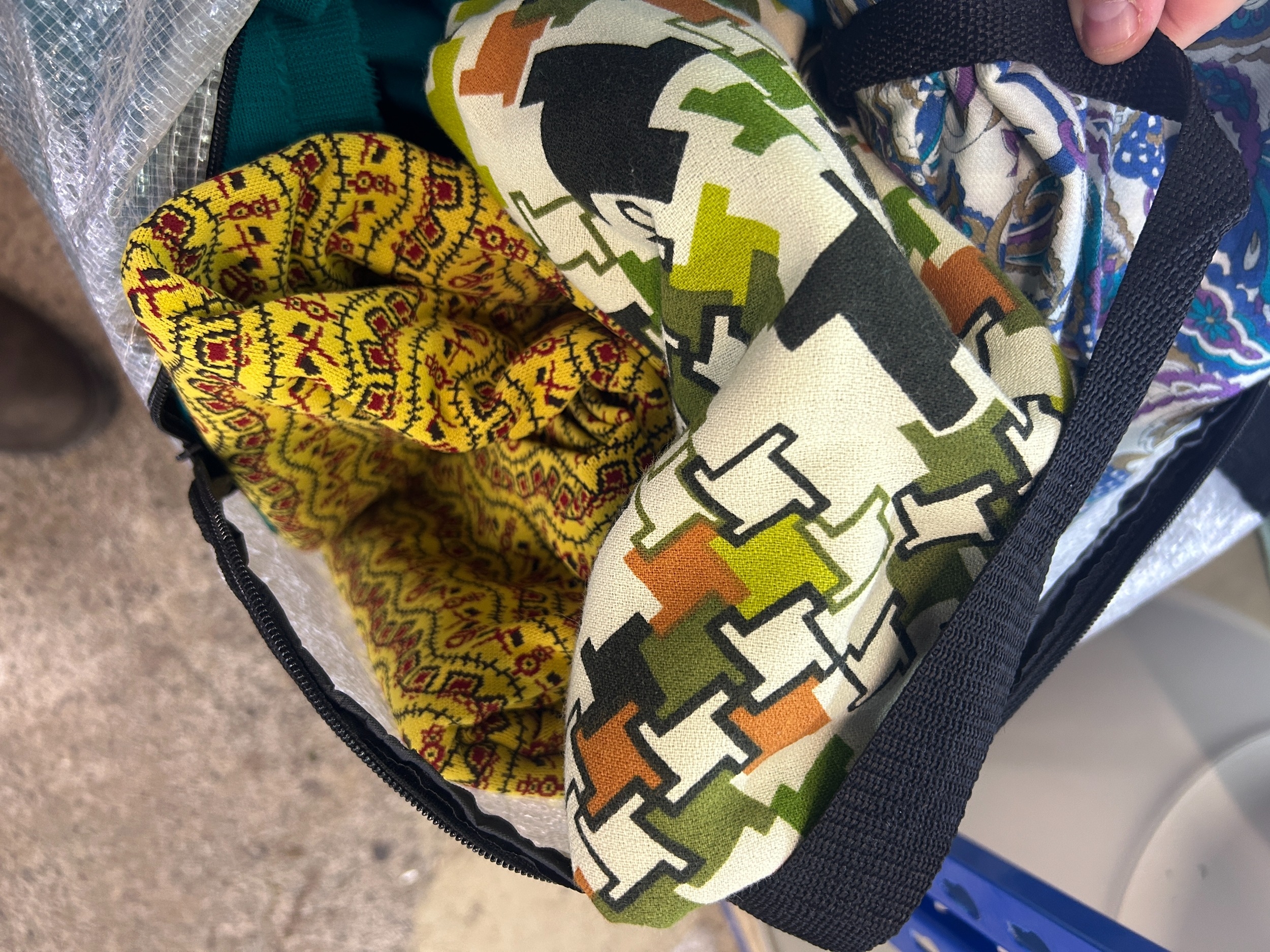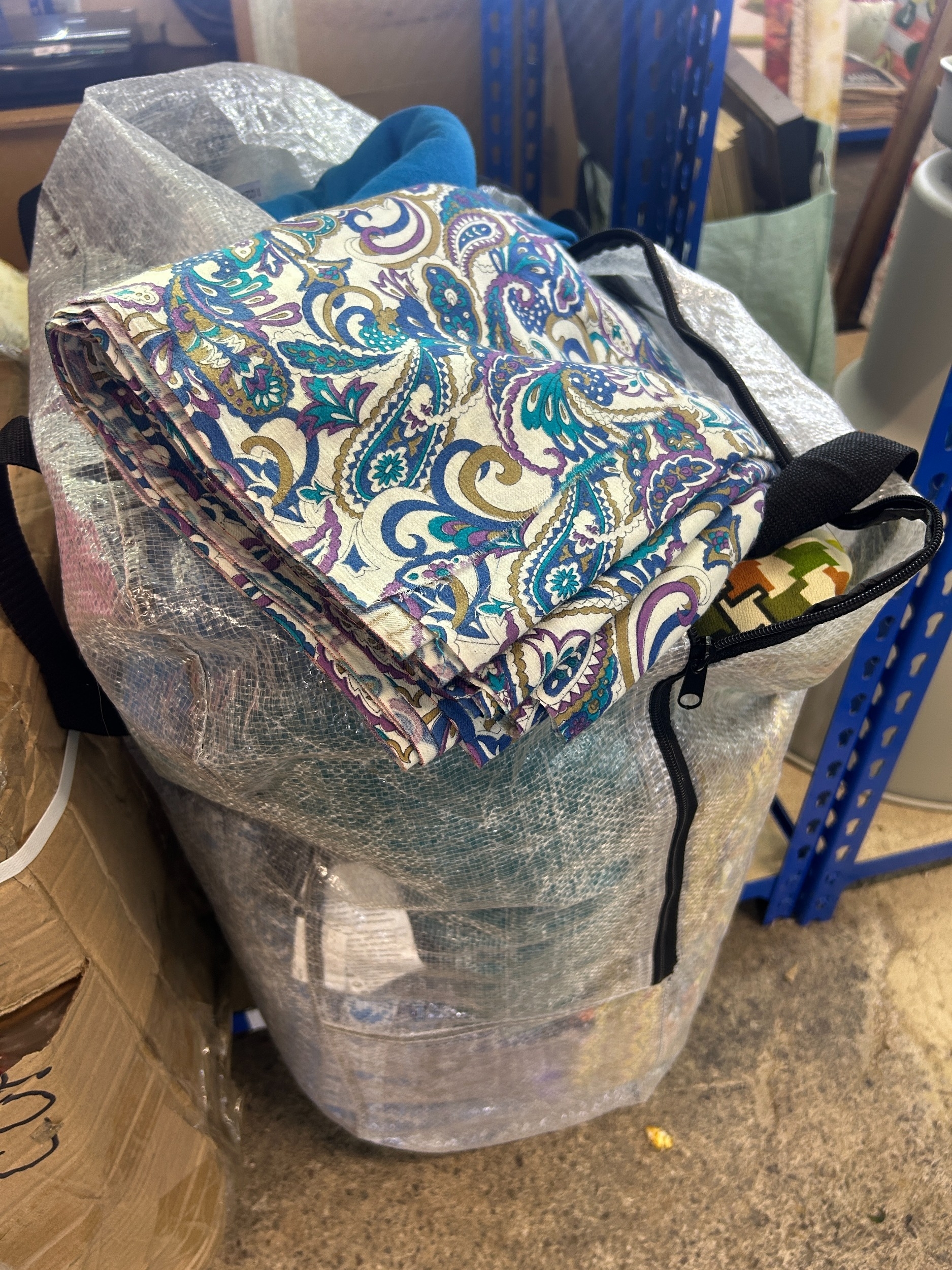 Large bag containing a mixed collection of vintage and later textiles, table clothes etc to include palissey type examples, etc