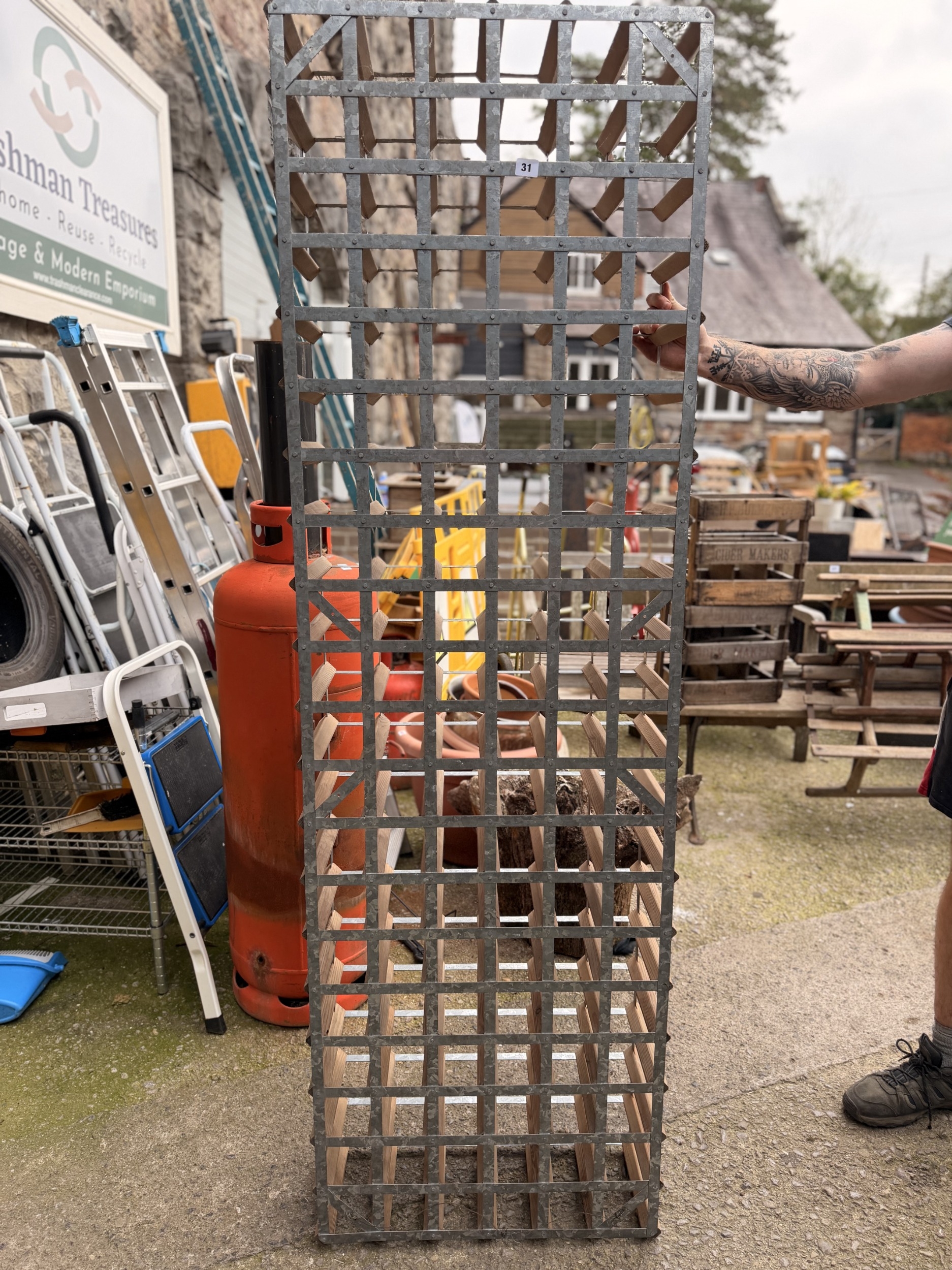 Galvanised and wooden freestanding 120 bottle wine rack