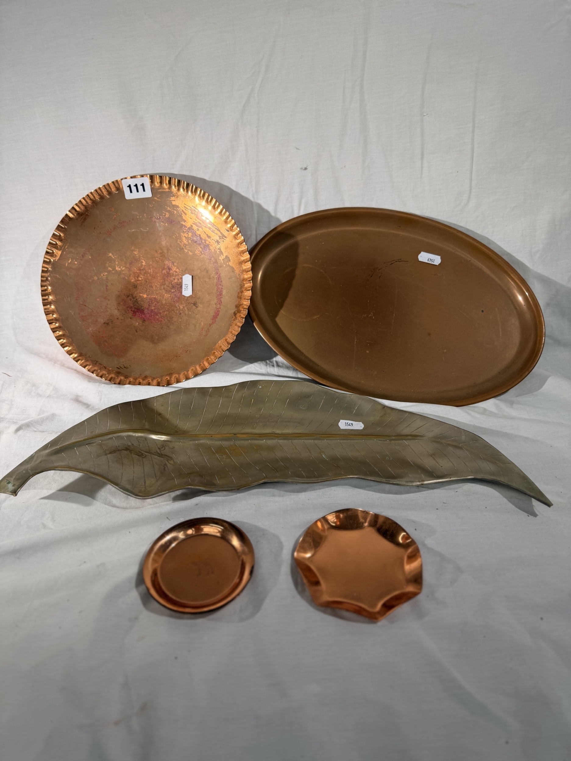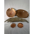 Mixed collection of metal trays to incldue copper, silvered examples etc