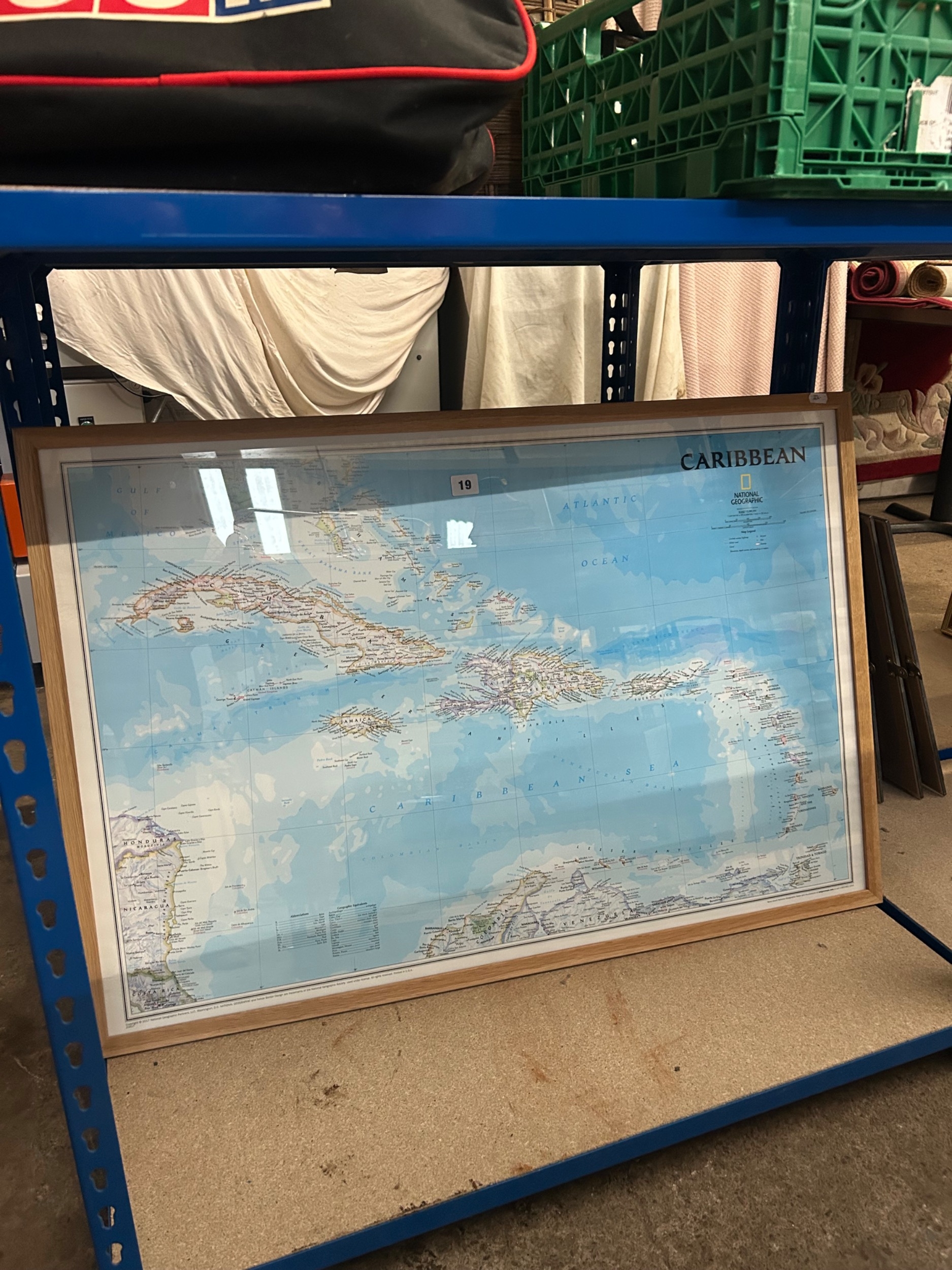 Framed and glazed National Geographic Map, ‘The Caribbean’