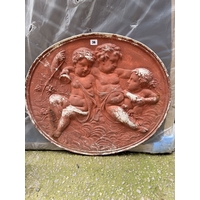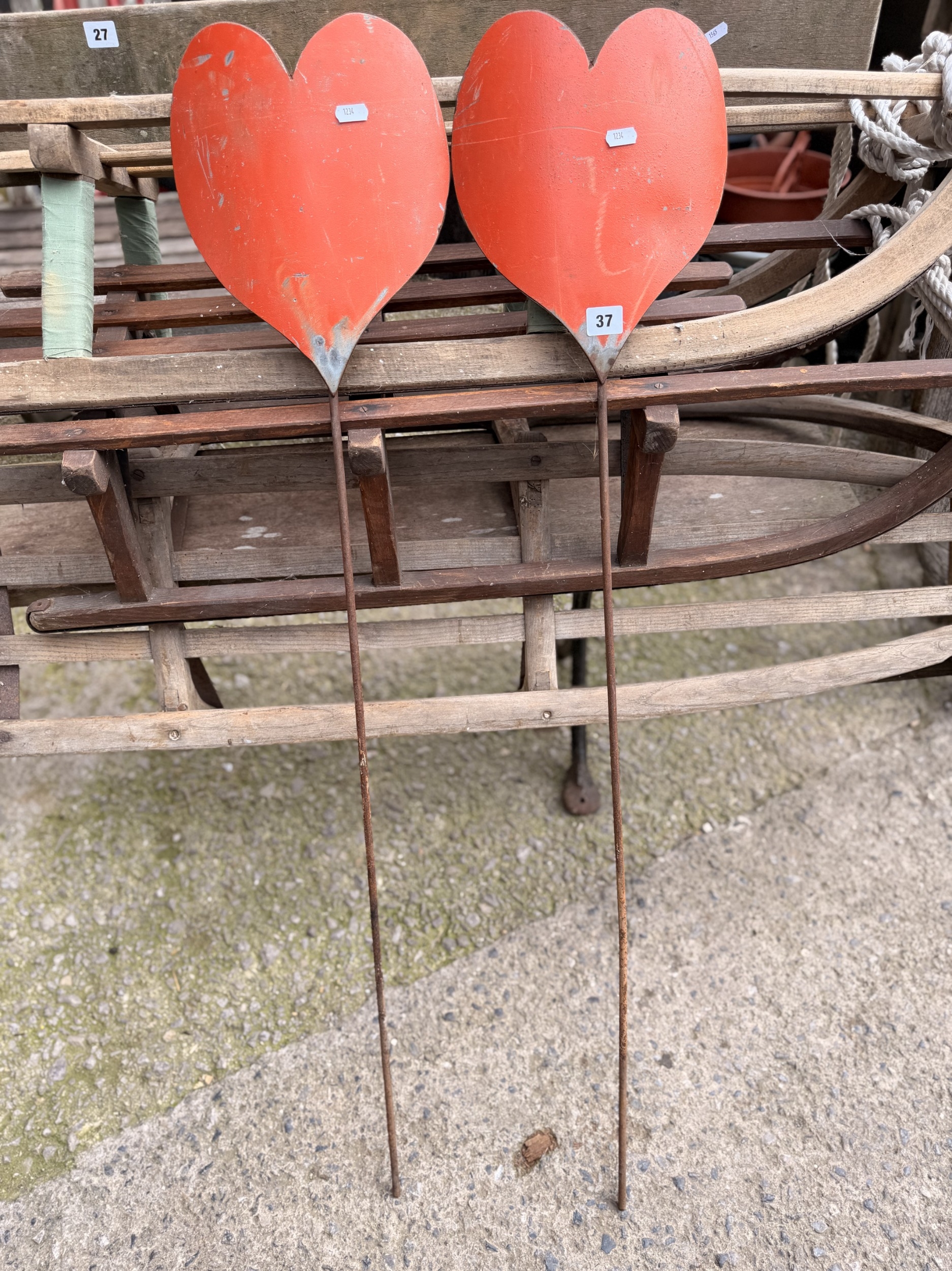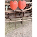 Pair of unusual vintage metal work stylised playing card suit love heart lawn markers, each 115 cm high