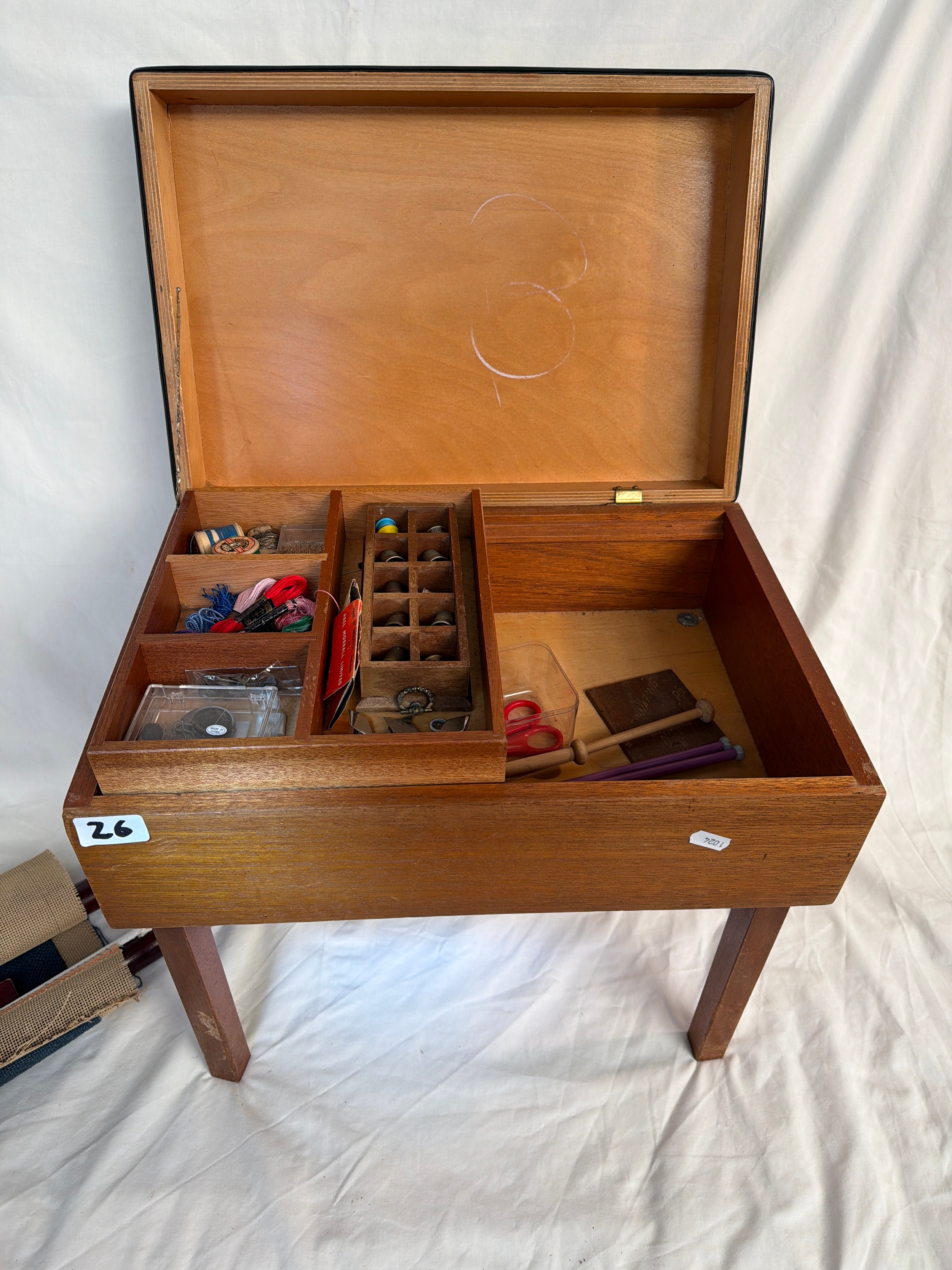 Mid century Sewing stool / box with 2 needle points