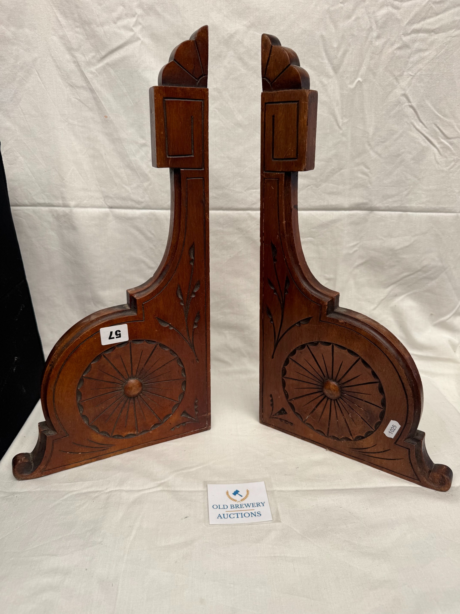 Pair of Aesthetic Movement period carved walnut brackets, 47 x 25cm
